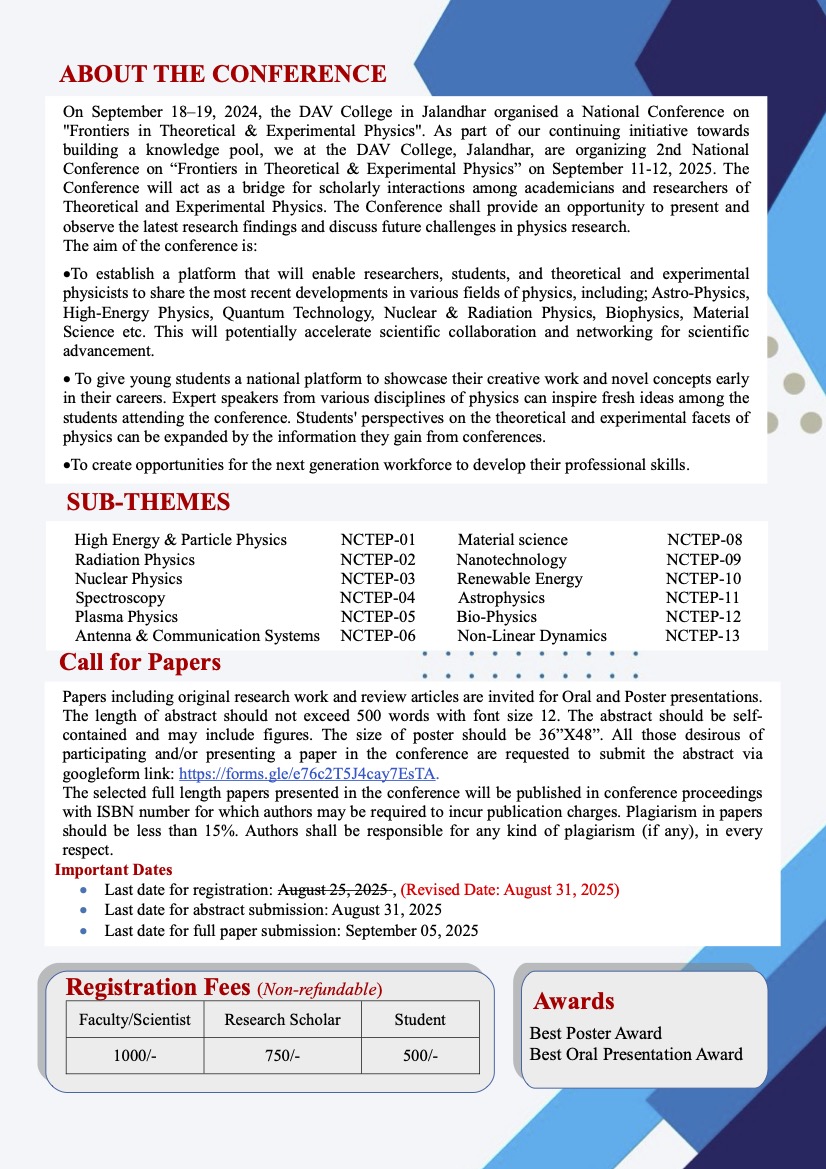 2nd NATIONAL CONFERENCE on Frontiers in Theoretical & Experimental Physics