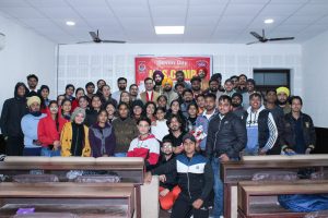 In the following segment, an intellectual session featured well-known artist Vikas Mongia who entertained the volunteers with his wit. Mr. Mongia motivated the volunteers with his valuable life experiences. He offered profound insights about careers and various challenges in the entertainment industry. Dr. Gurjeet Kaur conducted this session. Prof. Gurjit Singh formally thanked the guest for his valuable lecture. Coordinator Dr. Sahib Singh expressed special gratitude to the guest speaker.