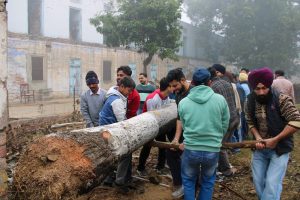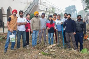 Subsequently, volunteers proceeded to Govt School Nandanpur where they organised a rally and raised slogans against various social evils such as drug addiction, pollution and stubble burning. They diligently cleaned up lawns and surrounding areas filled with weeds and shrubs. After the strenuous work at Nandanpur, volunteers returned to DAV College Jalandhar where they cleaned up a lawn and beautified it. In the afternoon, they enjoyed lunch together.